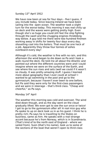(Exhibit: Titanic) In April of , the Titanic set sail from Southampton, England, to New York City in what is one of history’s deadliest disasters at sea. Unfortunately, the Titanic, on its maiden and final voyage, never reached its destination. Built by Harland and Wolf to be “unsinkable”, the Titanic was feet long, 92 feet wide · when the titanic sank. it took place at a.m. on April 15, , in the British blogger.comc sinks into the North Atlantic Ocean about miles south of Newfoundland, Canada. The massive ship, which carried 2, passengers and crew, had struck an iceberg two and half hours before On March 31, the Titanic was built. It was made to be the safest ship ever. It carried 2, passengers. It only hold 20 lifeboat. They had a life jacket in every room for all the passengers. One day it took a cruise to New York from Southampton, England. On its way there April the 14 at P.M the passengers saw an iceberg